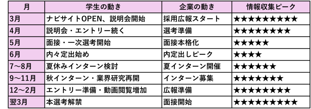 • 就活情報解禁の「3月」や合同説明会シーズンに公開するのが効果的。