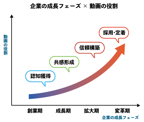 「これからこんな挑戦をしていく」「この新しいステージを一緒に作ってほしい」と映像で伝えることで、共感し、成長を共にしたいと思う人材を惹きつけられます。